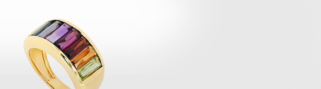 מחזה של צבעים, קלילות ושמחה. עושר הגוונים של אבני החן הברזילאיות בא לידי ביטוי בעיצוב נפלא המדמה את צבעי הקשת בענן, פלא הטבע המרהיב ביותר, בתכשיטי זהב צהוב 18 קראט.