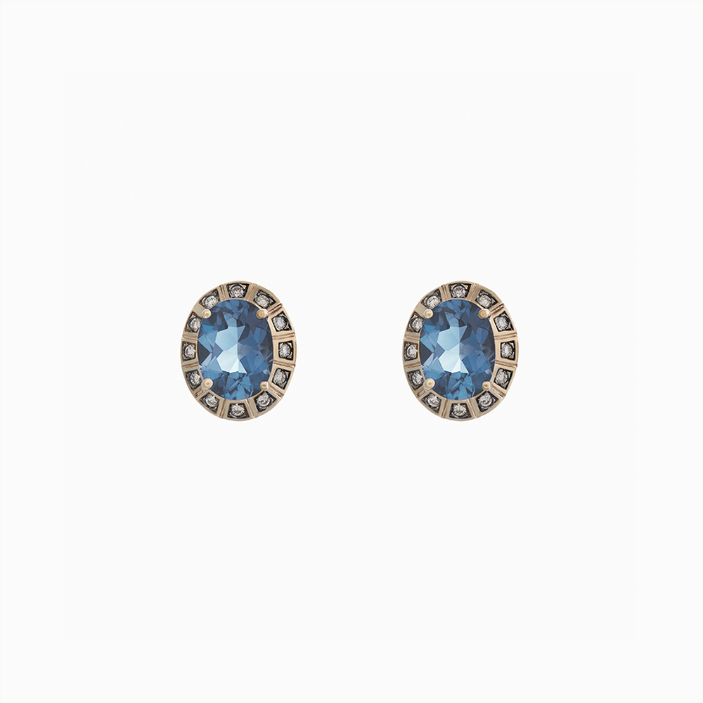 עגילי זהב אצילי, טופז כחול ויהלומים ARENA קטנים
