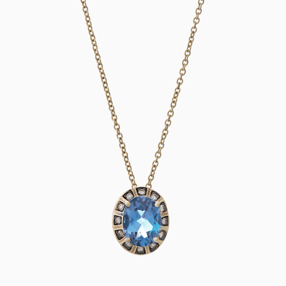 זהב אצילי 18K בשיבוץ טופז כחול במשקל 1.53 קראט ו- 12 יהלומים במשקל כולל של 0.07 קראט