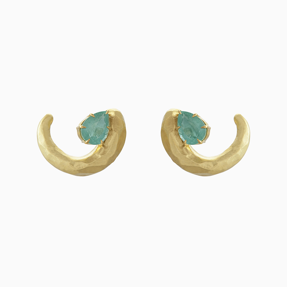 עגילי זהב צהוב ואמרלד METEOROS